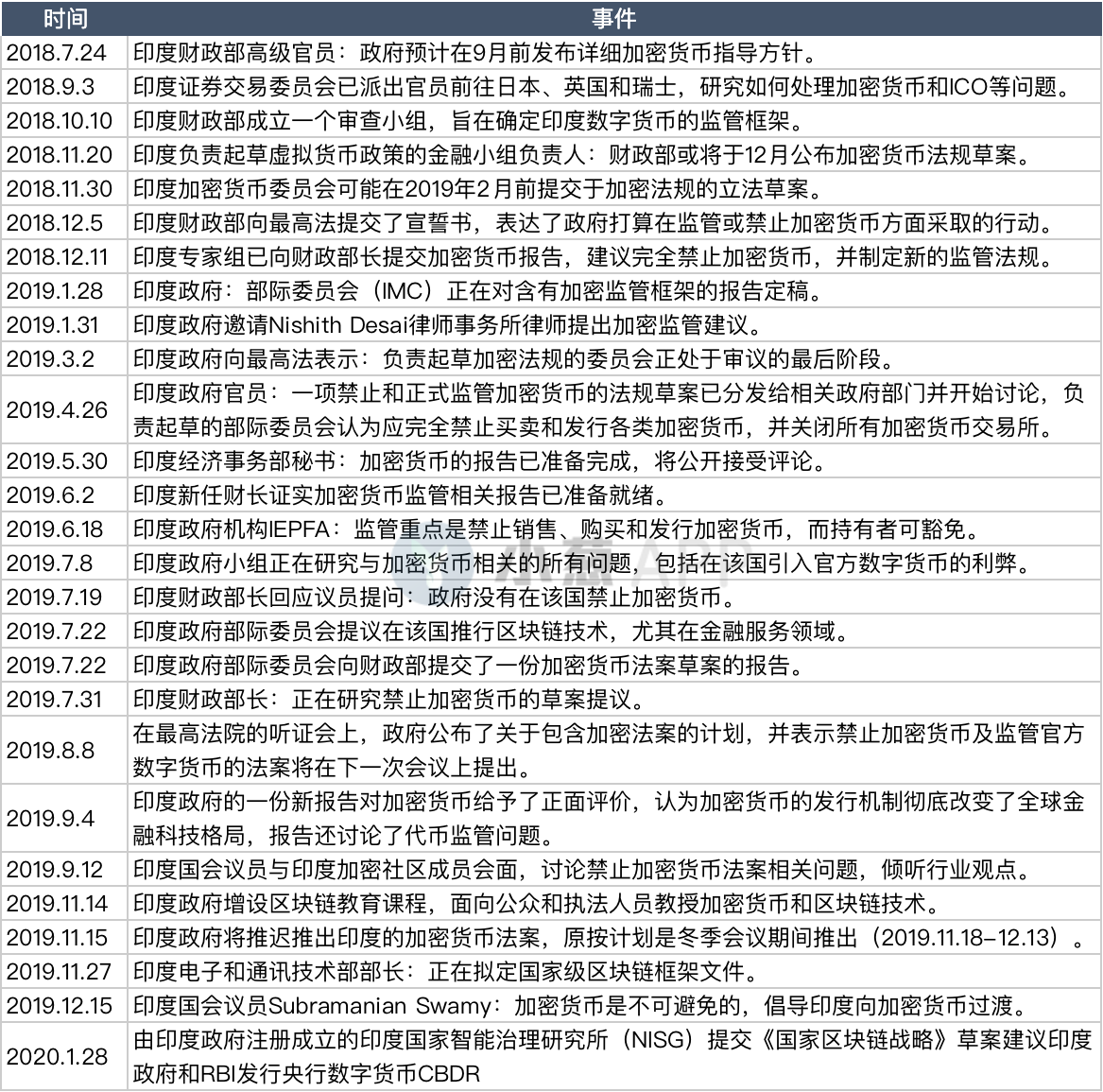 加之Facebook的Libra项目提出,全球政府及央行开始重新审视加密货币,印度政府似乎对加密货币的态度有所转变,先后做了一系列研究与跟进。