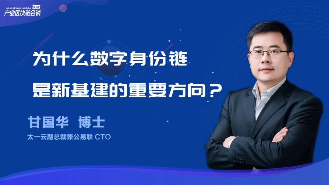 4月23日19:30,《产业区块链会谈》第3期社群直播顺利展开。本期主题为“为什么数字身份链是新基建的重要方向?”我们邀请到太一云副总裁兼公易联CTO甘国华博士和我们分享数字身份最前沿的应用——由公安部第三研究所作为指导单位的eID数字身份链。