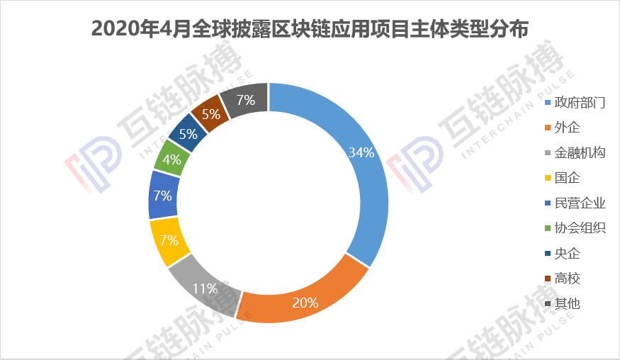从项目主体类型来看,4月份44个项目中,仍然是政府部门主导的项目数量最多,其次是外企。互链脉搏研究院(IPRI)统计数据显示,44个项目中,主体类型为政府部门和外企的项目各有15个和9个,二者占比分别为34.1%和20.5%。