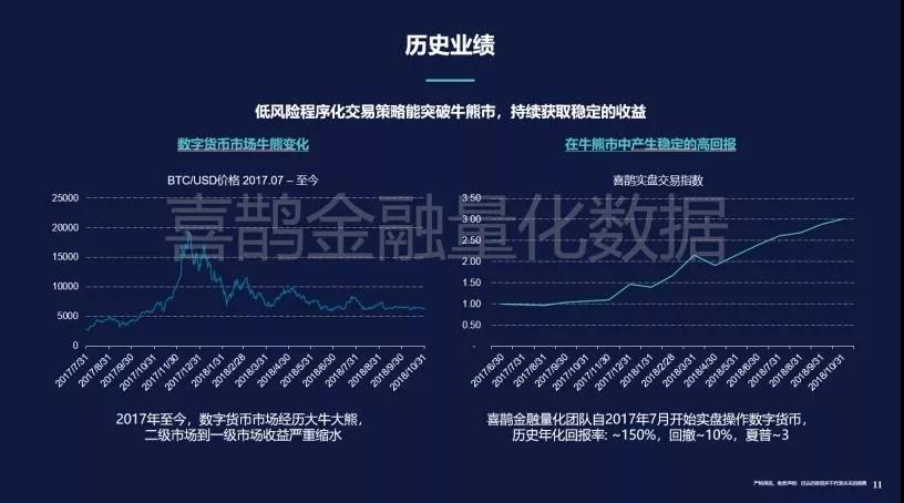 我在贝莱德做了5年量化后回国。去年开始才加入币圈做数字货币的量化投资。从今年开始对外开放,我们基金的年化收益率,在过往8个月做到差不多150%。这是币本位的收益,现在对外开放也正在募资。