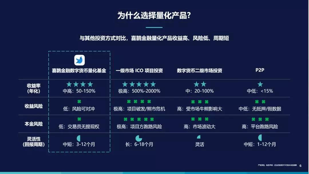 Q2:【喜鹊金融】是一家国际领先的数字资产管理机构,专注于为市场提供量化服务。请问宋总,喜鹊这边的量化投资目前可实现的年化收益如何呢?您觉得什么样的机构或者人群应该配置数字货币量化基金?