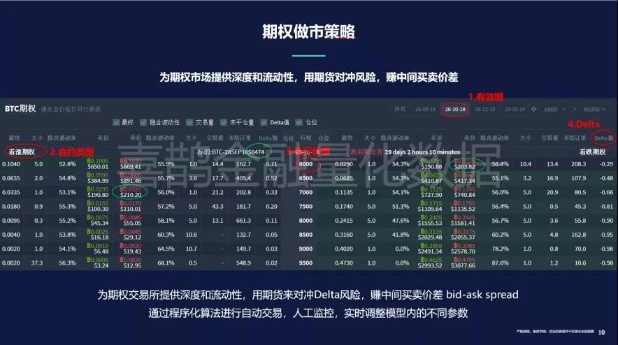 我们团队主要是聚焦比特币期权做市策略,在这方面我们是比较独特的。现在很少看到期权做市商,其技术要求也是最高的。在国内期权的类别不是非常主流,我们在这方面占比较明显的优势,把传统金融行业里已经验证过十多年的一些成熟策略运用到数字货币市场中。
