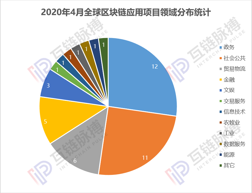 互链脉搏研究院(IPRI)统计数据显示,2020年4月,政务和社会公共类应用项目数量分别为12个和11个,占比分别为27.3%和25%。