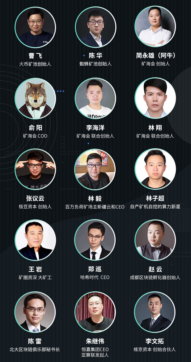 行业内耳熟能详的芯动科技、比特大陆、嘉楠耘智、神马矿机、熊猫矿机、狼神矿机、雪豹、黑虎鲨、鱼池、币印矿池、火币矿池、蜘蛛矿池等均确认出席。